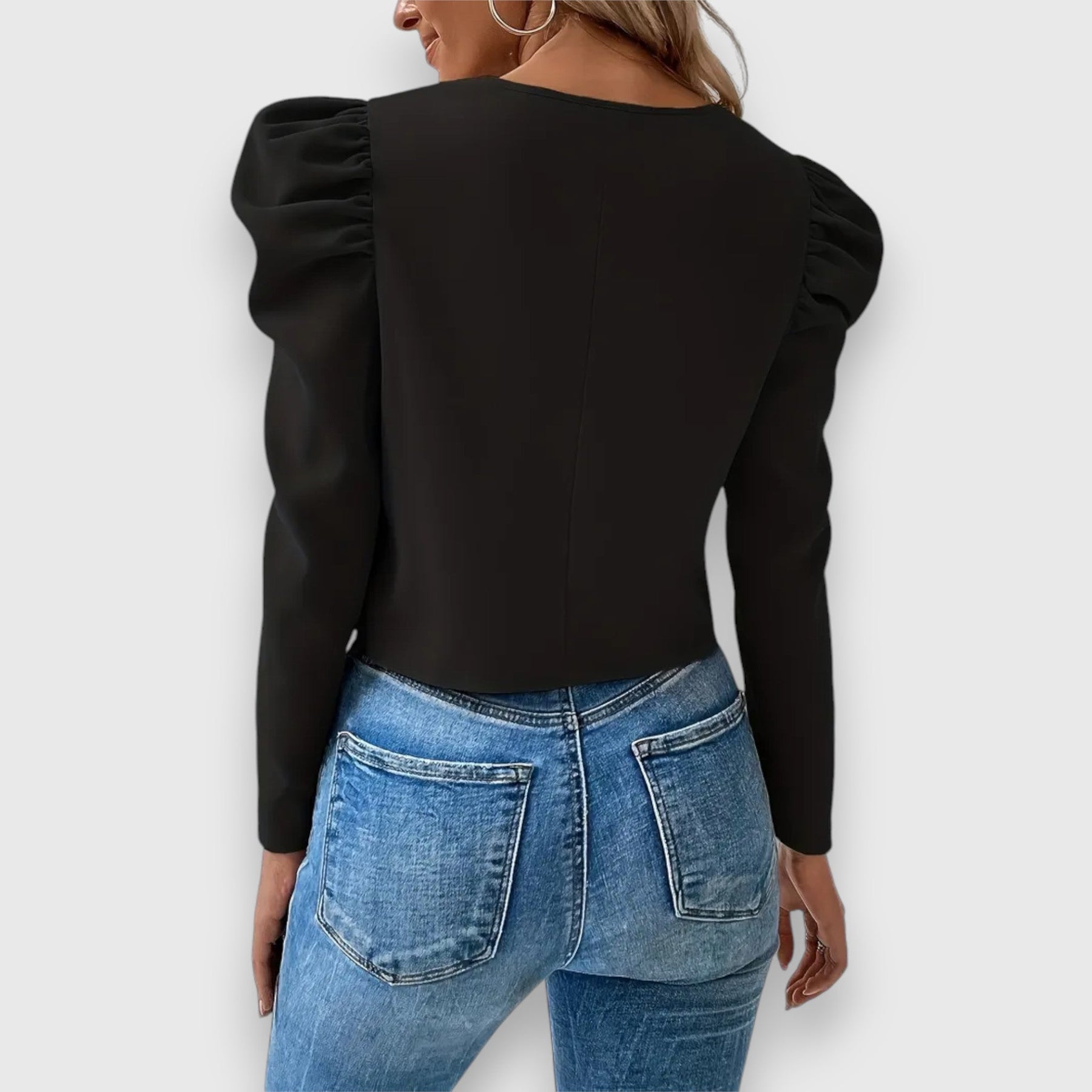 La veste Élise offre une allure subtilement sophistiquée tout en restant incroyablement facile à porter. Sa coupe courte met en valeur la silhouette tandis que les manches légèrement bouffantes ajoutent une touche féminine et actuelle. Légère, confortable et polyvalente, elle s’adapte aussi bien à une tenue décontractée qu’à une tenue élégante. Une pièce indispensable pour sublimer vos looks en toute simplicité.